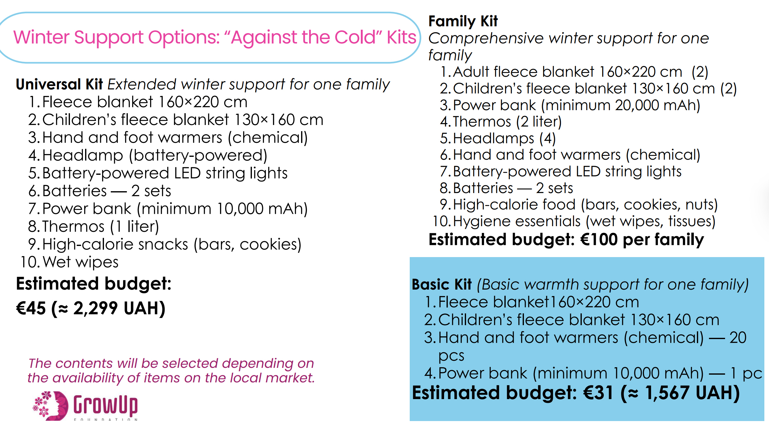 Die perfiden Angriffe Russlands auf die Energieversorgung der Ukraine sorgen seit Tagen für dunkle und kalte Häuser und Wohnungen. In allen Medien ist zu lesen, dass z.B in Kiew strenger Frost herrscht. Vor allem Kinder und Familien leiden unter der Kälte. Ihre Gesundheit ist gefährdet. Deshalb freuen wir uns über eine erneute Initiative unserer Partnerin und Freundin Maryna Bohun aus Kiew. Mit ihrer Initiative „against the cold“ richtet sie sich vor allem an ukrainische Binnenflüchtlinge. Mit 5000 € aus unserem Budget verteilt Maryna in Kürze verschiedene Kits mit Fleece-Decken, Hand- und Fusswärmern, Stirnlampen, Batterien und Powerbanks sowie energiereiche Müsliriegel. Wir freuen uns, wenn sich weitere Unterstützer finden, die für 30, 45 oder 100€ ein Päckchen finanzieren und so für etwas Wärme im Leben der Kinder in dieser herausfordernden Zeit sorgen. Spenden sind per Paypal oder Überweisung mit Stichwort „Ukraine-Kit“ möglich.