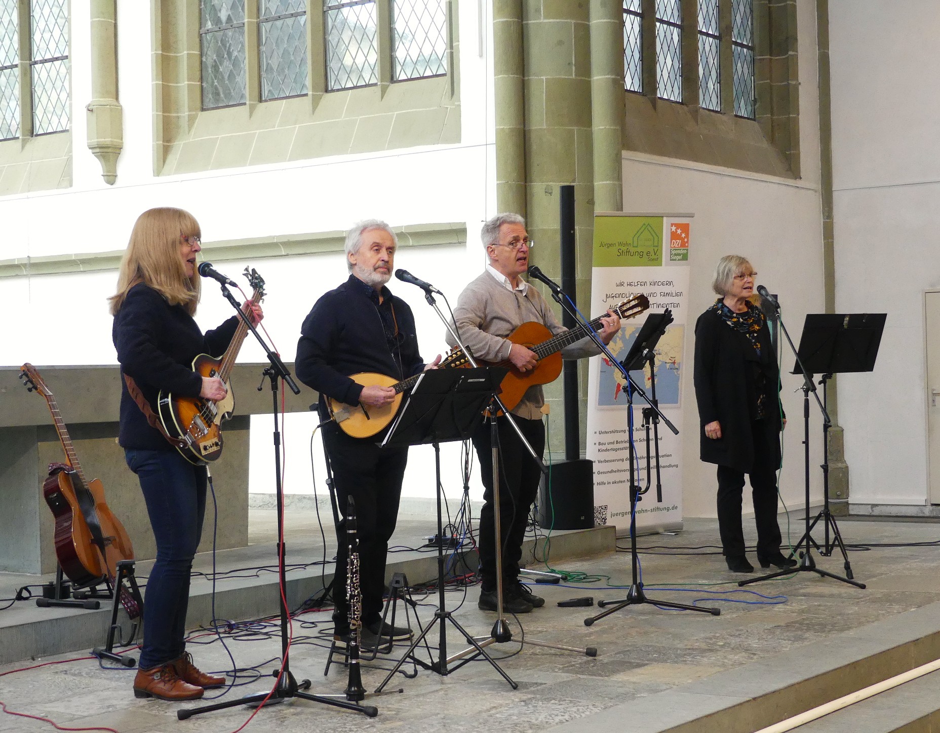 Cara Baya hatte der Jürgen Wahn Stiftung angeboten, ohne Gage für ein Projekt zu spielen. Und viele Soesterinnen und Soester freuten sich offenbar, die Gruppe um Winfried Kempf wieder einmal live erleben zu dürfen. Die Bänke in der Kulturkirche waren nämlich sehr gut besetzt, als JWS-Vorsitzender Thomas Frye in seiner Begrüßung das breite Engagement des Vereins skizzierte. Er hob hervor, dass es bei allen Projekten immer einen engen persönlichen Kontakt zu den Partnerinnen und Partnern vor Ort gibt und dass aufgrund des ehrenamtlichen Einsatzes die Spenden direkt denen zugutekommen, für die sie bestimmt sind. Diesmal also den behinderten Kindern, die dringend einen Spielplatz brauchen, der auch dazu beitragen soll, ihre motorische Entwicklung zu unterstützen.